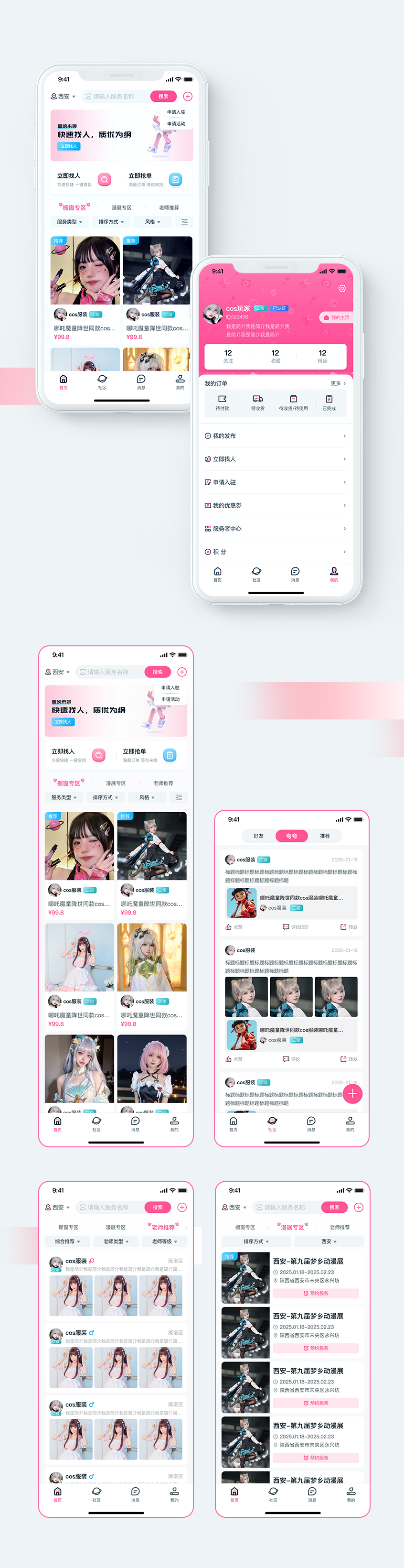 功能模块:论坛、聊天、商城、在线找人、在线抢单等服务。